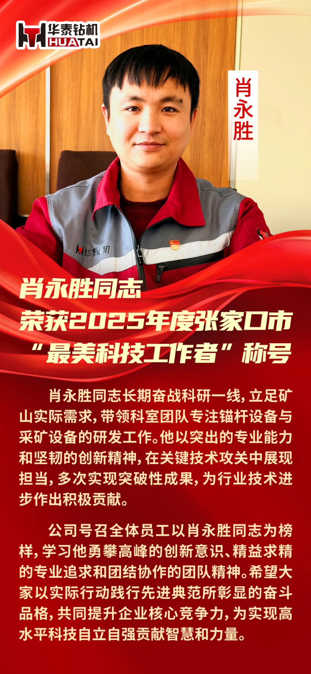 在创新驱动的时代浪潮中,我公司研发先锋肖永胜同志凭借其卓越的技术贡献与创新精神,成功获评2025年度张家口市“最美科技工作者”!这一荣誉不仅是对他个人专业能力的极高认可,更是公司坚持科技引领、深耕技术创新的生动体现。