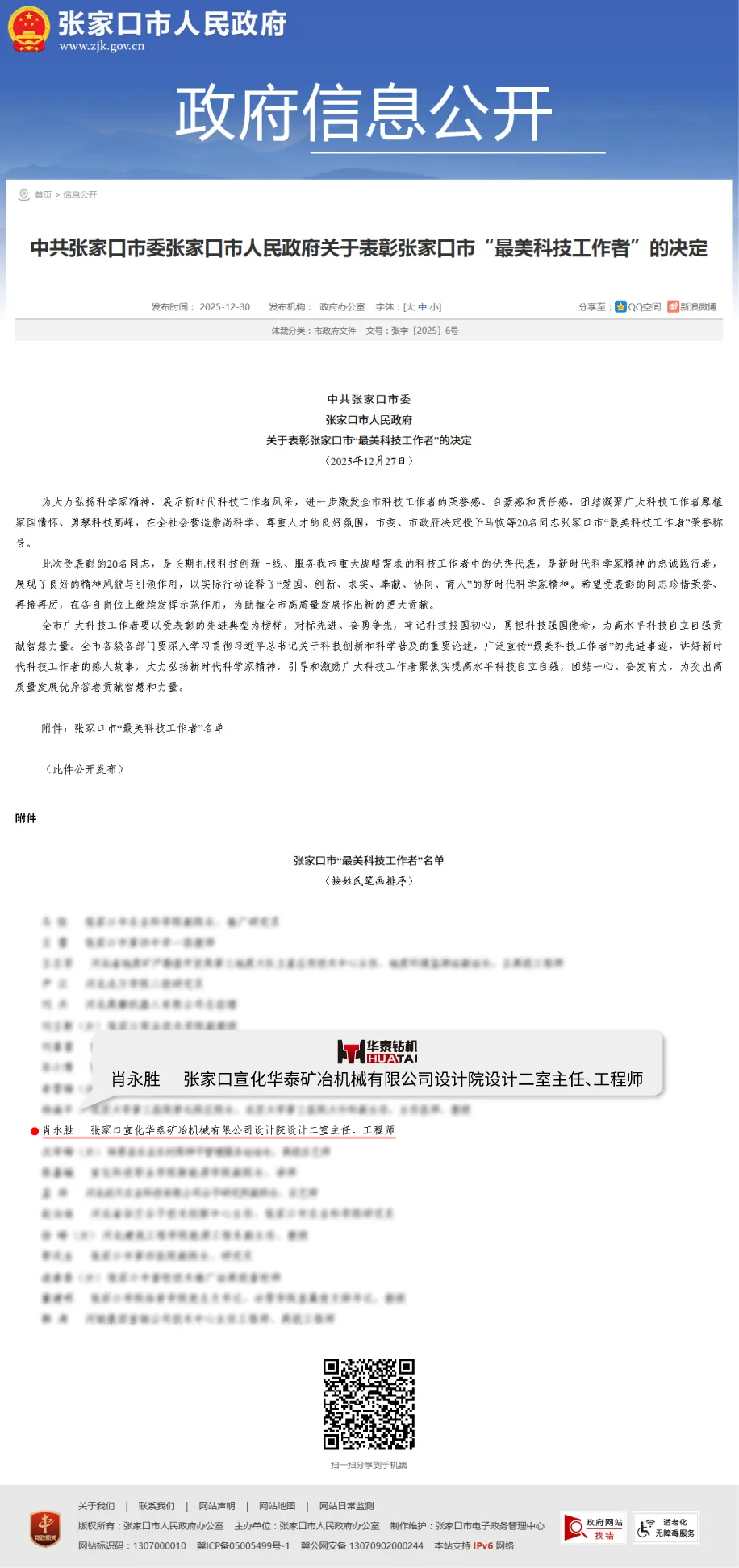 匠心铸就卓越!肖永胜同志荣获2025年度张家口市“最美科技工作者”称号